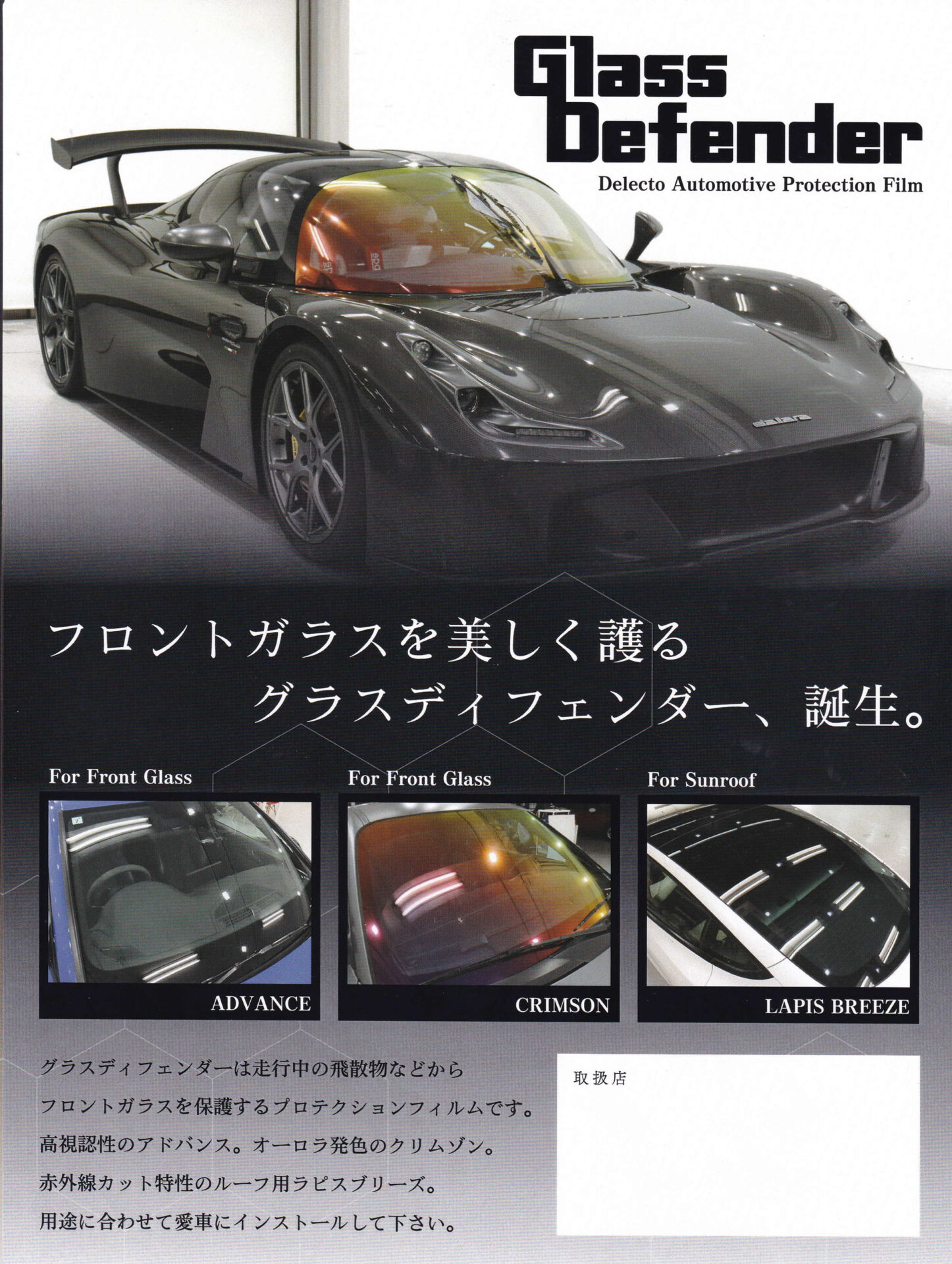 防汚・撥水性能を備えており、雨や砂利、飛び石など日常的な外的要因からガラスを長期間保護します。