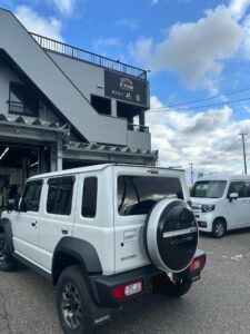 今回はジムニーのリアガラスへ プレミアムフィルムを施工させていただきました。